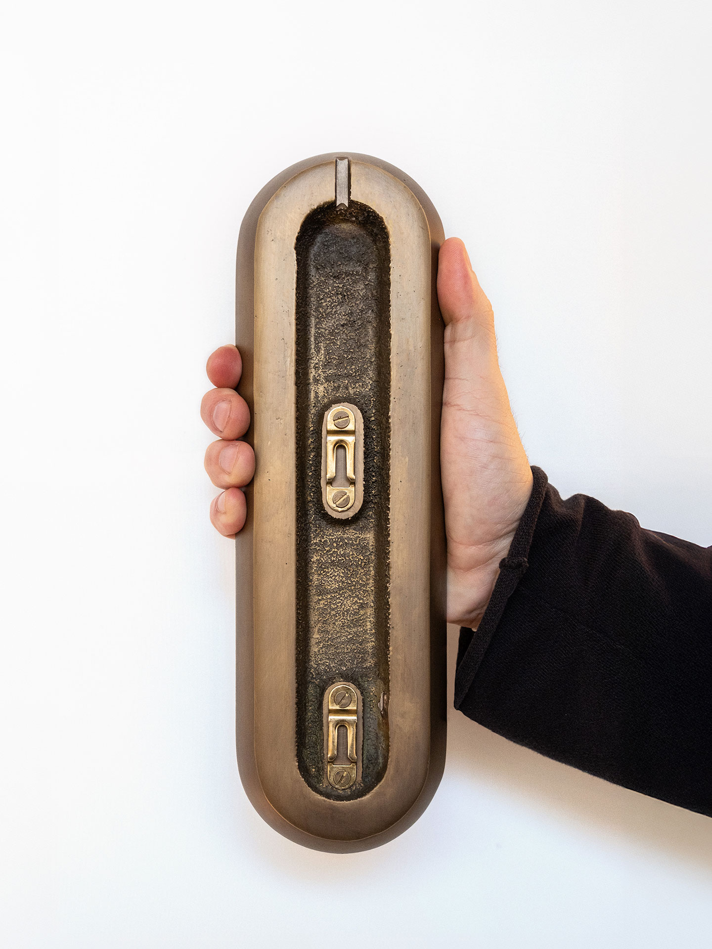 Através de um detalhe de fixação na base em latão, a luminária Jo.Bô híbrida 02 pode ser utilizada como abajur ou arandela.