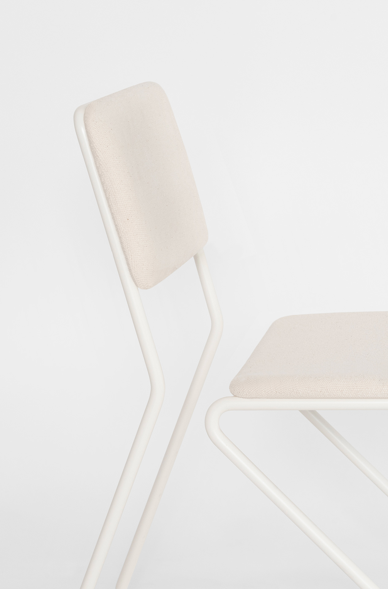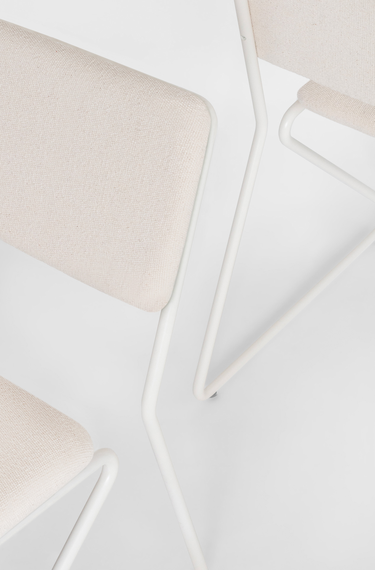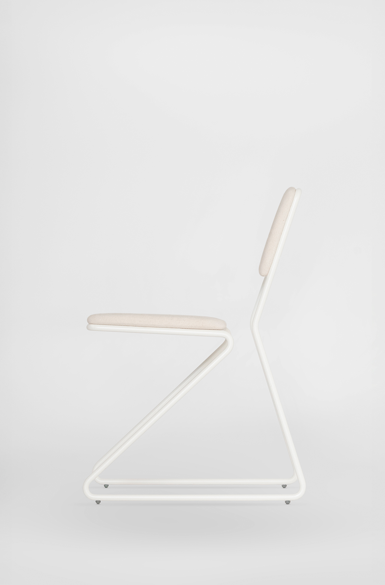Uma única linha percorre toda estrutura da Cadeira Mola estofada. Fabricada em aço mola, oferece flexibilidade para ajuste ao corpo do usuário, potencializando a ergonomia e conforto.